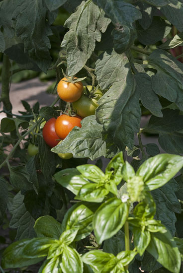 - Tomaten met borage, kool, goudsbloemen, basilicum, afrikaantjes, allium, wortel, oregano
