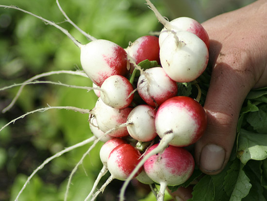 Een ander voordeel van onze verhoogde vaste bedden is, dat ze ook sneller opwarmen en opdrogen, vaak kunnen we vanaf midden maart al zaaien. De volgende groentes kunnen nu in volle grond gezaaid worden: sla, wortels, spinazie, snijbiet, koolrabi.