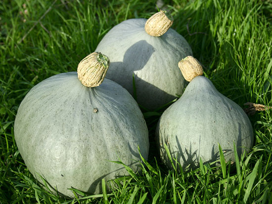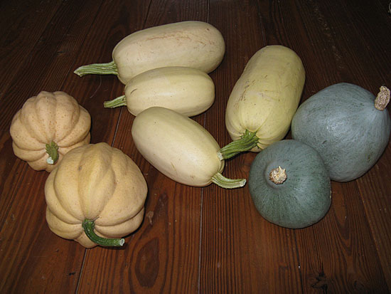 De pompoenen werden in oktober bij droog weer geoogst en bewaard in een onverwarmde slaapkamer. We konden er vanaf oktober tot maart dit jaar van eten.