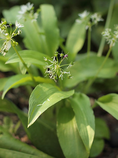 Daslook (Allium ursinum) is een inheemse bosplant, wat betekent dat hij een standplaats onder bladverliezende bomen verkiest, die in het voorjaar licht is, maar later schaduwrijk. Daslook is makkelijk te telen - soms te makkelijk zelfs. Op een geschikte standplaats kan de plant zich behoorlijk uitbreiden, maar dat betekent ook, dat we er in het vroege voorjaar veel van kunnen plukken. Zowel de brede bladeren als de witte bloemen hebben een sterk knoflookaroma. Beide kunnen in gemengde salades gegeten worden, maar ook verwerkt tot een pittige pesto saus.
