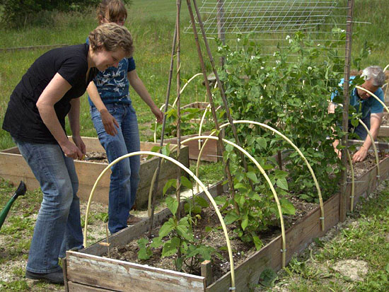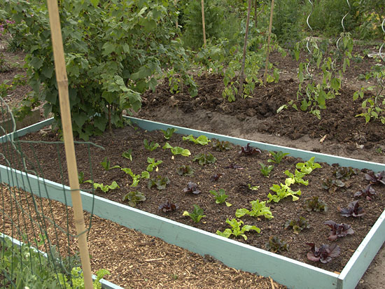 Makkelijkst te maken: de bovenlaag van de paden wordt bovenop de bedden gegooid, waardoor de bedden iets hoger worden. Door bemesten en mulchen worden bedden in de loop van tijd steeds hoger dan de paden.