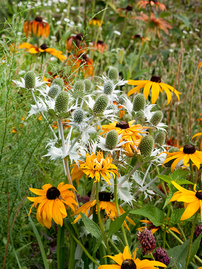 De meeste distels gedijen het best in een grindtuin. Plant ze niet te dicht op elkaar, want dan komen ze het best tot hun recht. Ze combineren goed met siergrassen of prairieplanten.