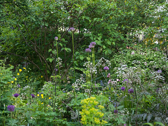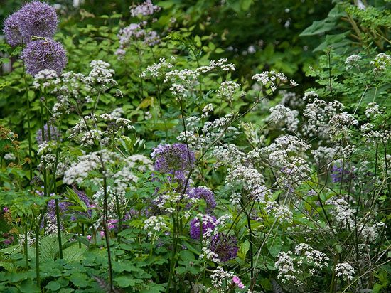 Fluitenkruid is een uitstekende weefplant die moeiteloos allerlei planten met elkaar kan verweven. De witte bloeikleur en het transparante uiterlijk maken ’t een makkelijke combinatiepartner voor allerlei planten die onder min of meer vergelijkbare omstandigheden gedijen (dus licht beschaduwd en een beetje vochtig).