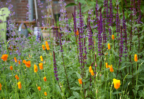 Toen het eindelijk tijd was voor de planten heb ik voor elk eiland een beplantingsplan gemaakt met heesters, vaste planten, bollen en eenjarigen. Op veel plekken hebben we gezaaid, de tuin was te groot en ons budget was te klein om alles in een keer vol te zetten. Maar dat is de charme, zo kunnen we nog jaren door met zaaien, uitplanten, verplaatsen en aanvullen met cadeautjes uit andere tuinen.
