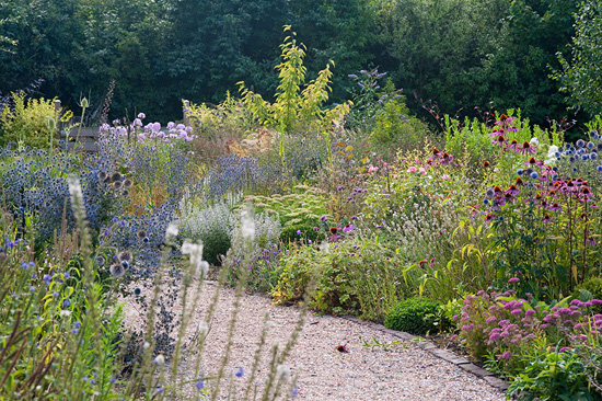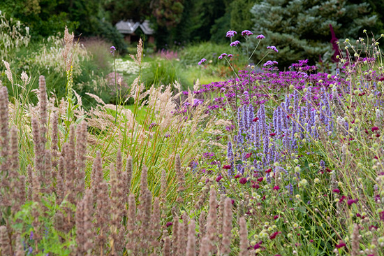Prairiebeplantingen kunnen goed worden aangevuld met planten die niet afkomstig zijn van de Noord-Amerikaanse prairies, zoals Salvia nemorosa, Verbena bonariensis, eryngium, hemerocallis of astrantia.