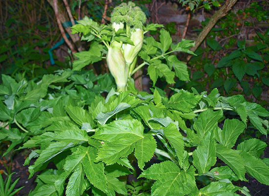 Uit frustratie gooide ik een hoop engelwortel-zaden (Angelica ursina) in een border. Die was ik vergeten te zaaien. Het was vrij oud zaad en zou waarschijnlijk niet meer uit de kiemrust willen komen. Maar wat schetst mijn verbazing na een strenge winter? Flink grote Angelica ursina’s in de tuin! Heb er één laten staan, voor de zaden, want ze is echt een beer van een plant en helemaal niet engelachtig.