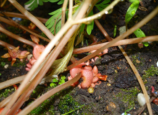 Zo ook Dicentra cucullaria (’Volendammer broekjes’). Die maakt broedbolletjes aan zijn voeten. Ze gaat in zomerrust en verdwijnt dan bovengronds. De meesten vinden het een moeilijke plant. Ja, nogal wiedes als er steeds in je voeten gekrauwd wordt als men ’s zomers weer vergeten was dat er op die kale plek een plant stond.
