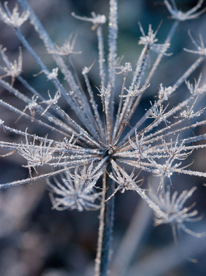 Juist heel donker, bijna zwart, kleuren de zaaddozen en stengels van vaste planten als rudbeckia, echinacea, helenium en verbascum.